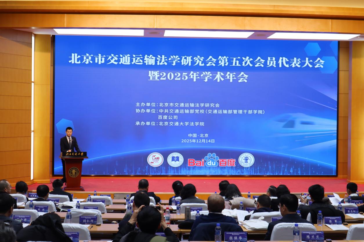 2025年12月14日,北京市交通运输法学研究会第五次会员代表大会暨2025年学术年会在北京交通大学举行。本次会议由北京市交通运输法学研究会主办,中共交通运输部党校(交通运输部管理干部学院)和百度公司协办,北京交通大学法学院承办。北京市法学会党组成员、专职副会长王桂芳,北京交通大学党委常委、副校长艾渤,交通运输部党校第一副校长、交通运输部管理干部学院党委书记刘鹏飞,交通运输部科学研究院副院长、总工程师王先进,北京市交通委法制处处长刘小野,百度公司副总裁吴梦漪等领导和嘉宾出席开幕式并致辞,交通运输部法制司条法二处处长杜瑞孔、国家铁路局科法司法制处处长江水长、国家邮政局发展研究中心政策法规处处长耿艳、北京市交通委法制处副处长吴建雄、北京市法学会联络部副主任程露茜、北京交通大学社科处副处长吴静等出席会议。