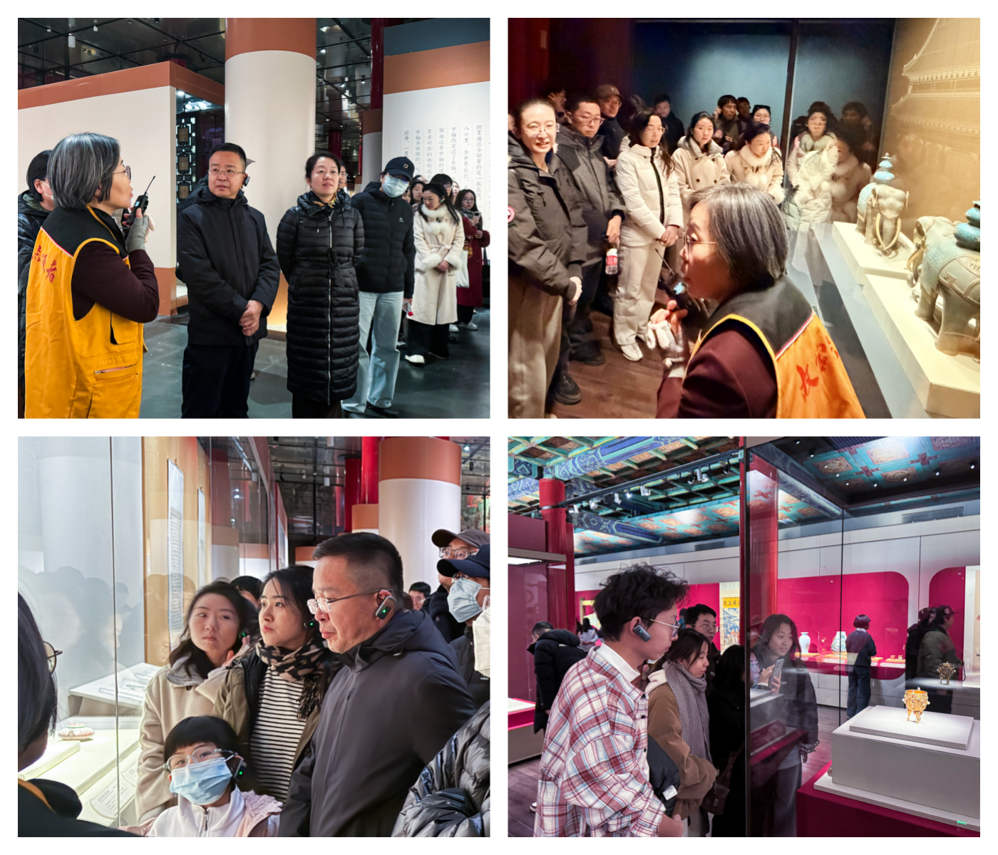 在讲解员的带领下,老师们依次走进文华殿参观“金邻共曜”四个单元展,见证丝绸之路上延绵不断的文化交流,感受中泰两国携手共进、构建人类命运共同体的坚定信念。随后,步入午门展厅,参观“百年守护——从紫禁城到故宫博物院”特展,从“一脉文渊”到“百年传承”,再到“万千气象”,老师们一睹传世名画《清明上河图》、凝望传承三千多年的亚醜方尊、定格含义隽永的金瓯永固杯。大家时而驻足凝视,仔细观察文物细节;时而轻声交流,分享感悟思考,从历经沧桑却依旧精美的一件件展品中,体悟一代代故宫人诚敬典守、匠心传承的精神。